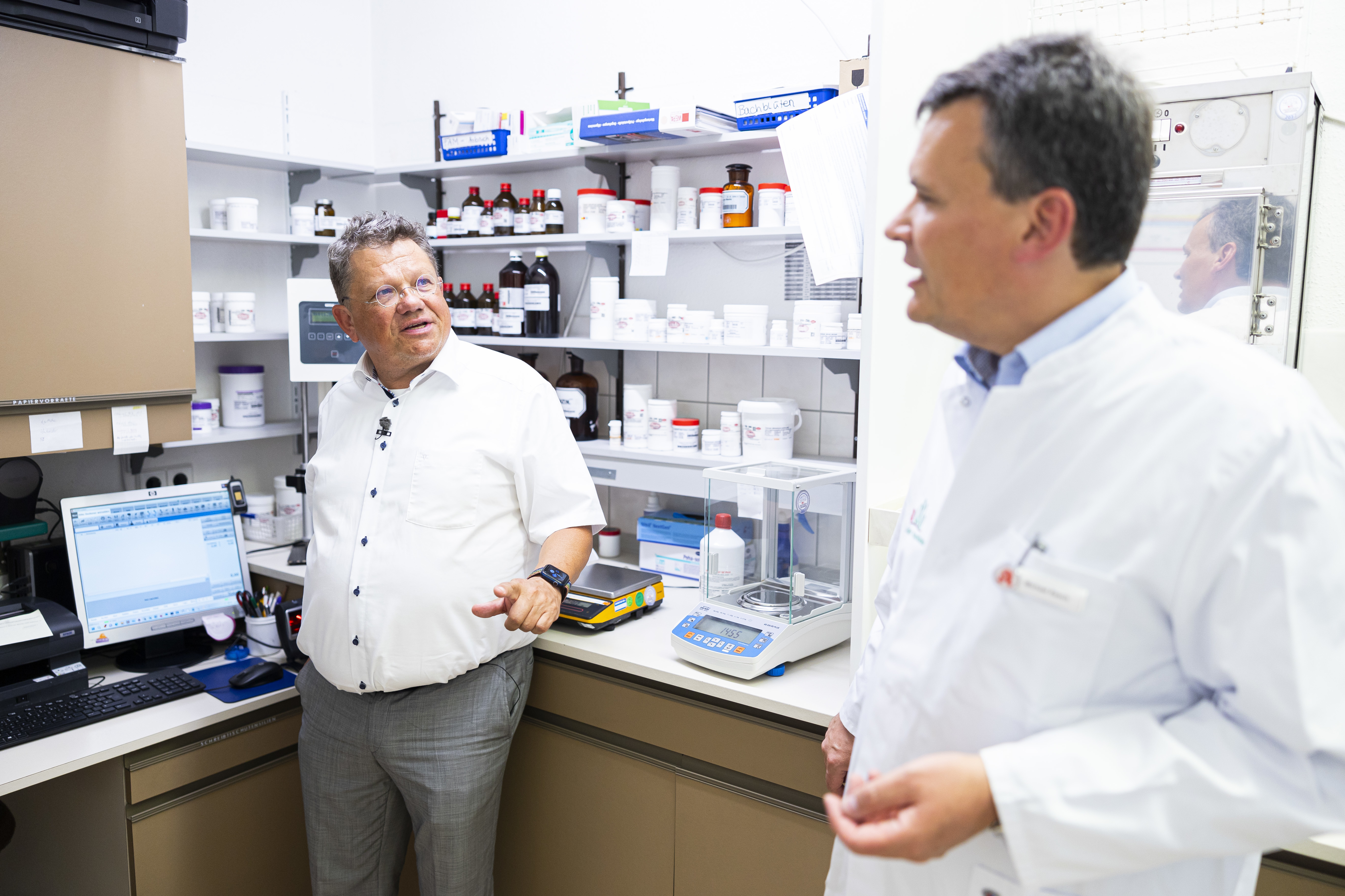 Der nächste Halt führte Minister Philippi in den Landkreis Uelzen. Dort hat er der Wacholder Apotheke in Suderburg einen Besuch abgestattet. Auch hier steht die Gesundheitsversorgung in ländlich geprägten Regionen im Fokus. Denn Apotheken wie die Wacholder Apotheke stehen im Vergleich zu Standorten in urbanen Gebieten besonderen Herausforderungen gegenüber. Oftmals ist die Belieferung von Patientinnen und Patienten mit langen Fahrtzeiten verbunden. Während seines Aufenthalts hat der Minister selbst Medikamente gemischt, ausgegeben und vor dem Hintergrund der geplanten Strukturreform des Bundes über die Zukunft der (Land-)Apotheken sprechen.