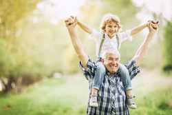 Foto: Großvater mit seinem Enkel auf den Schultern.